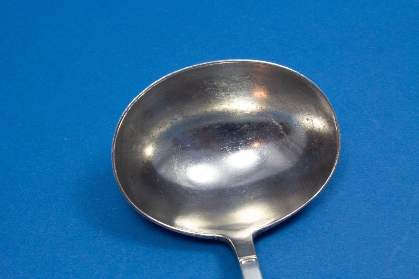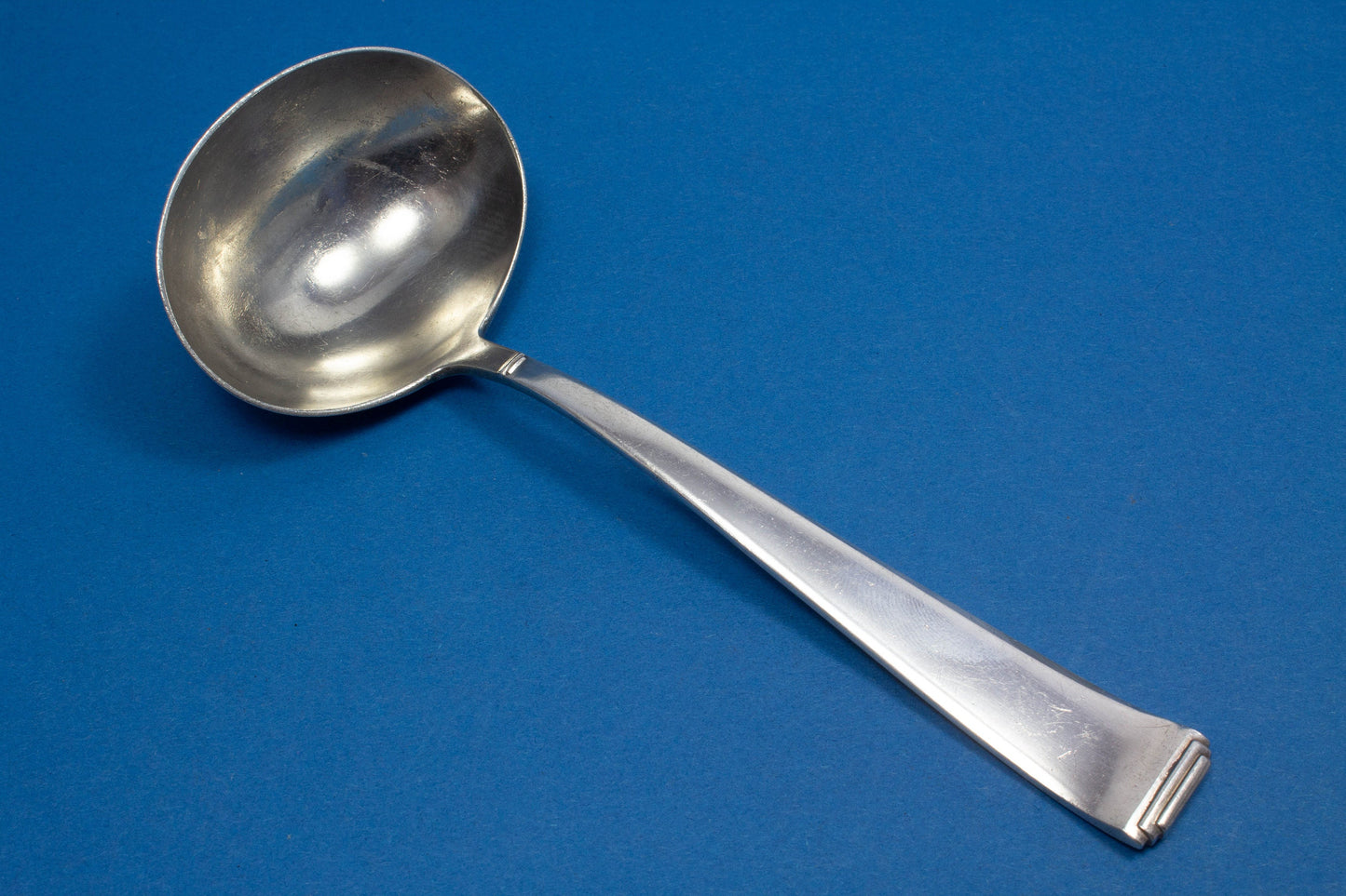 Eine versilberte Soßenkelle mit einem hübschen Muster.
