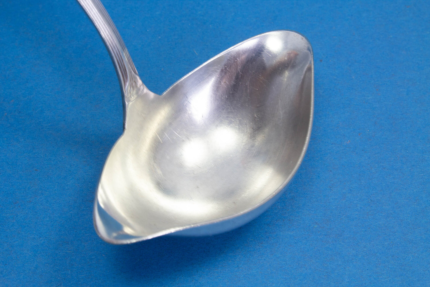 Eine versilberte Soßenkelle mit einem hübschen Muster.