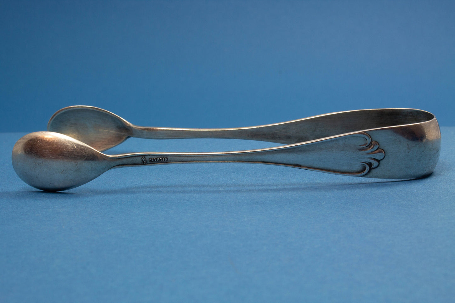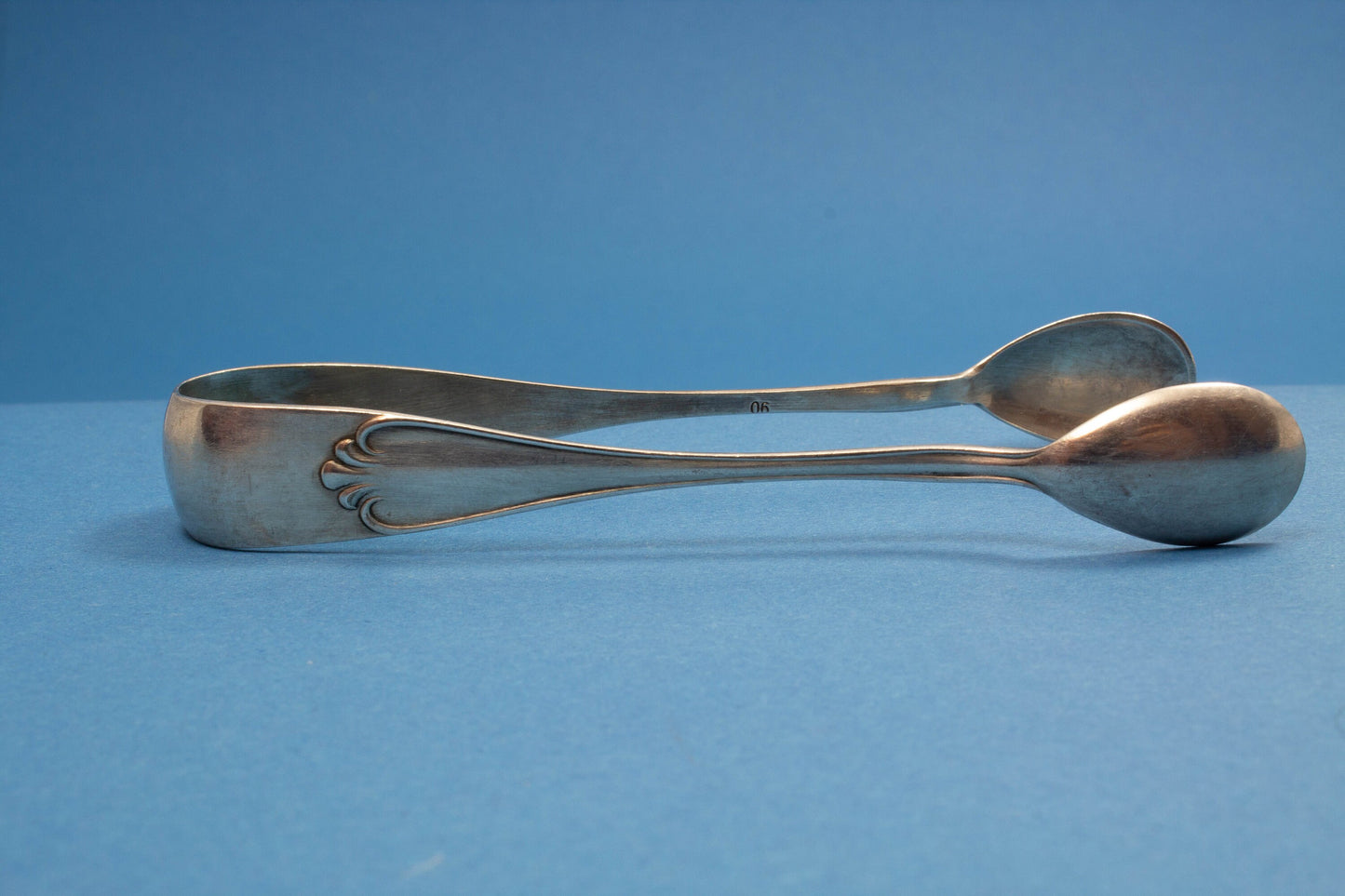 Eine schöne versilberte Zuckerzange für den besonderen Teegenuss.
