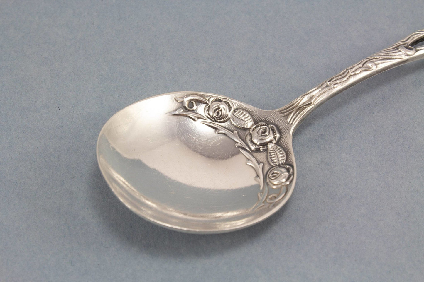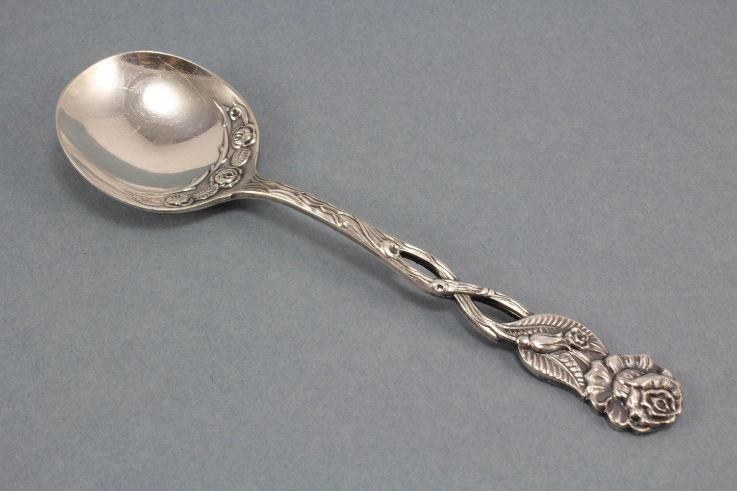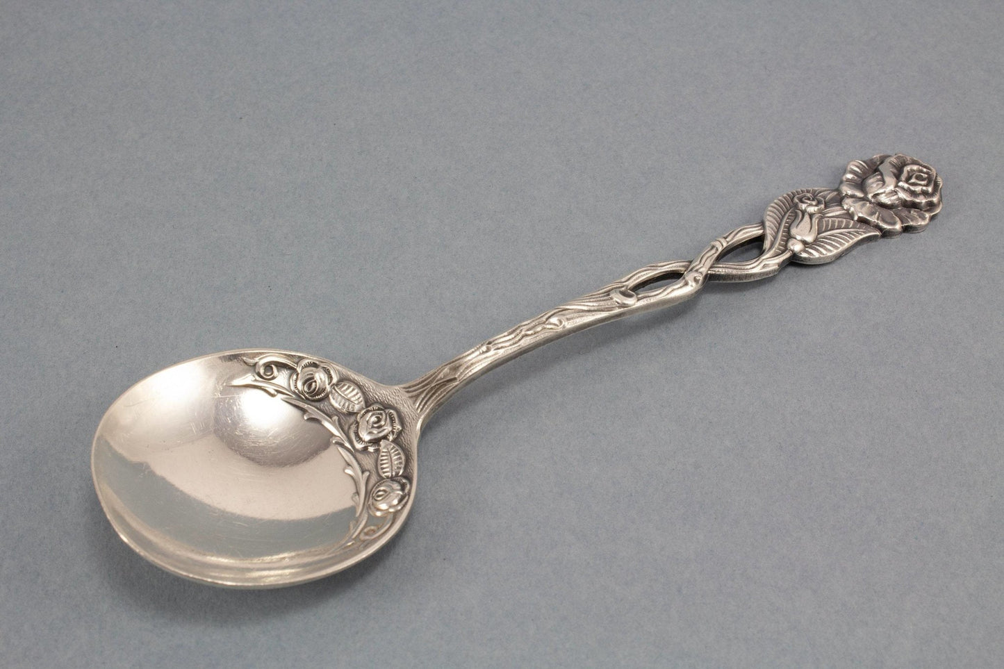 Versilberter Sahnelöffel mit Rosenmuster