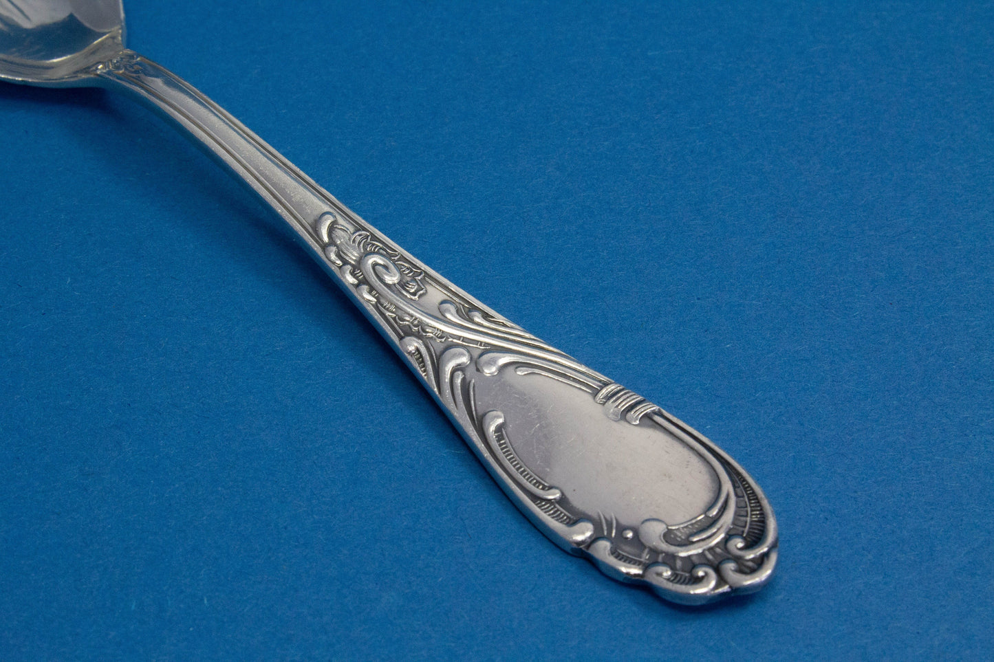 Versilberter Zuckerlöffel mit Rokoko-Verzierungen