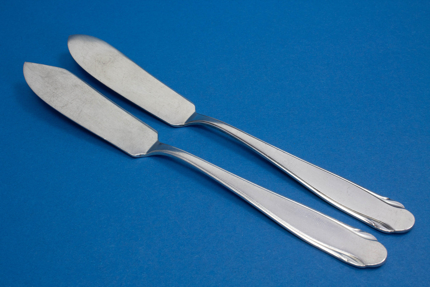 Versilbertes Besteck von WMF, Käsemesser und Buttermesser, barock