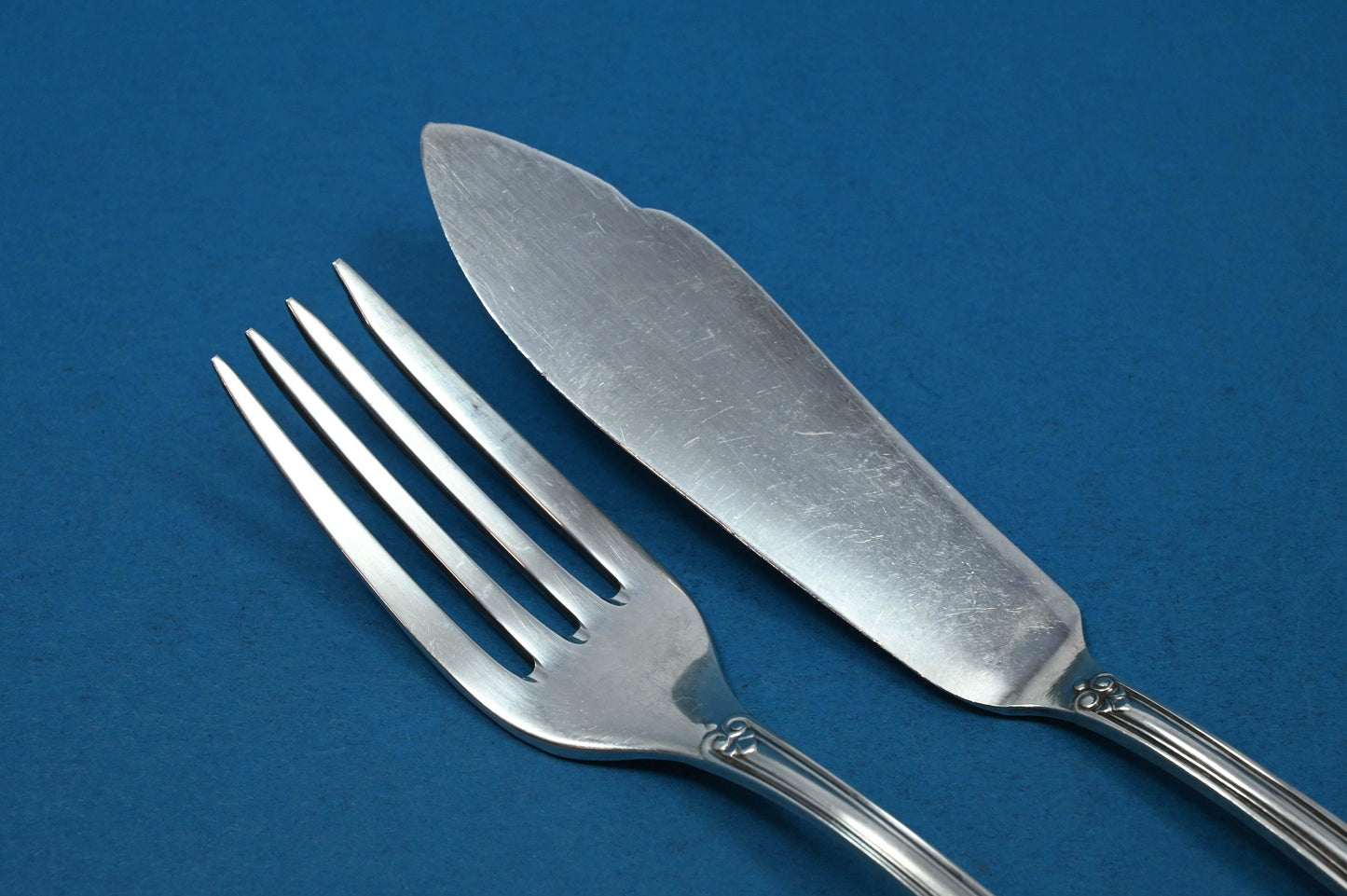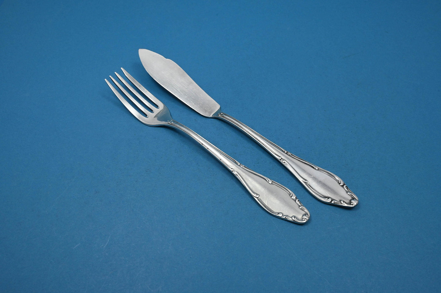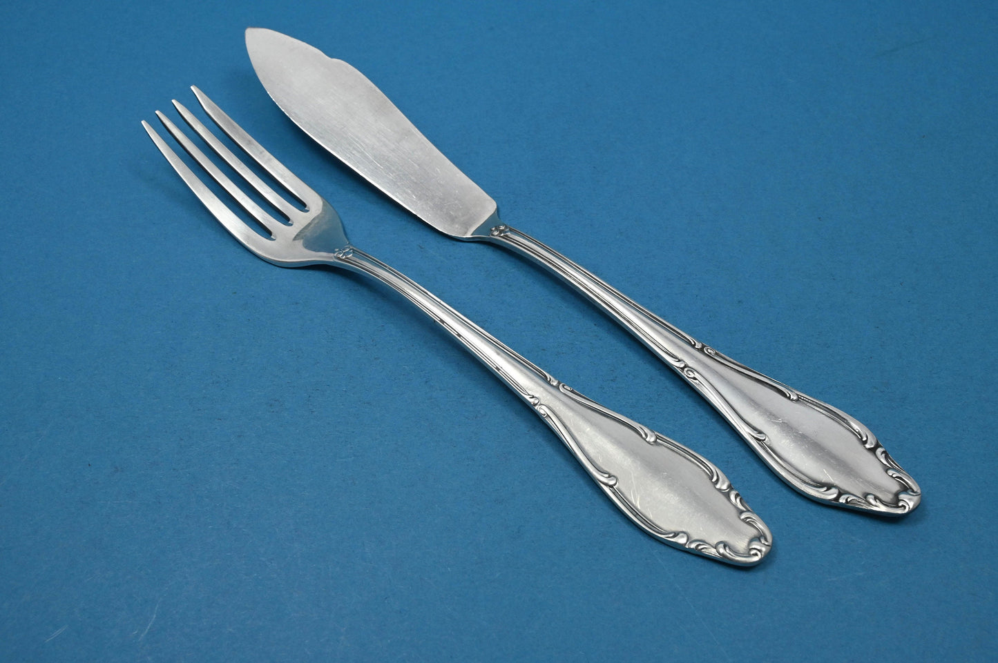 Das Besteck-Set besteht aus einer Fischgabel und einem Fischmesser.