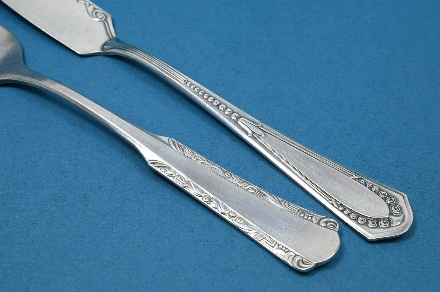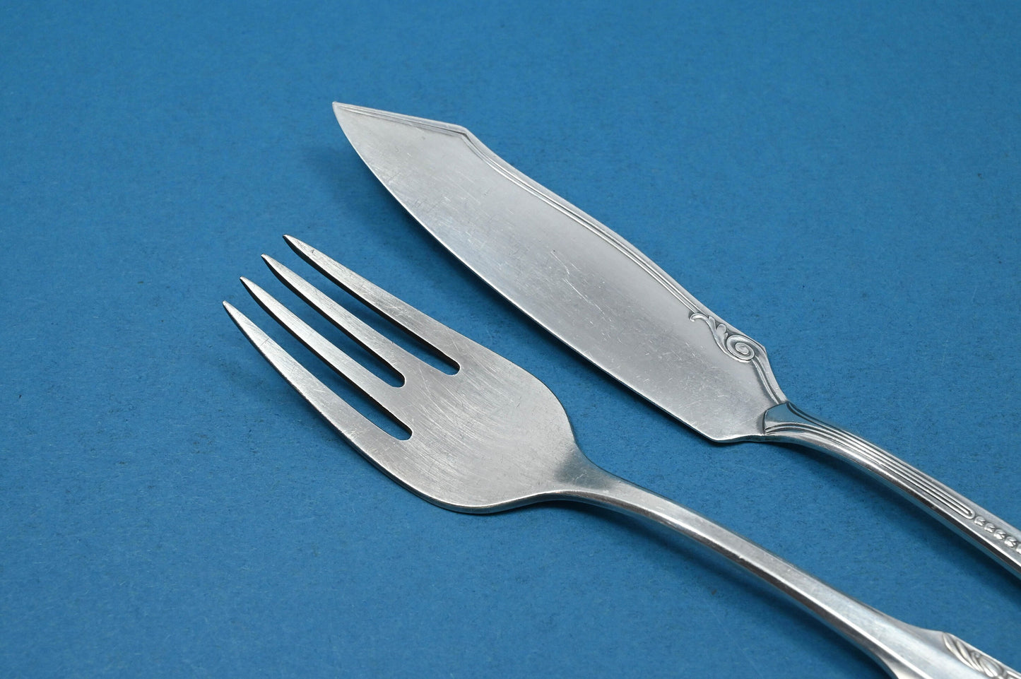 Versilbertes Mix and Match Fischbesteck für eine Person, Jugendstilbesteck