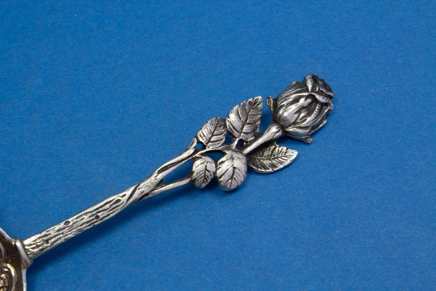 Zarter Zuckerlöffel aus 800er Silber, Rosenbesteck, Tafelsilber