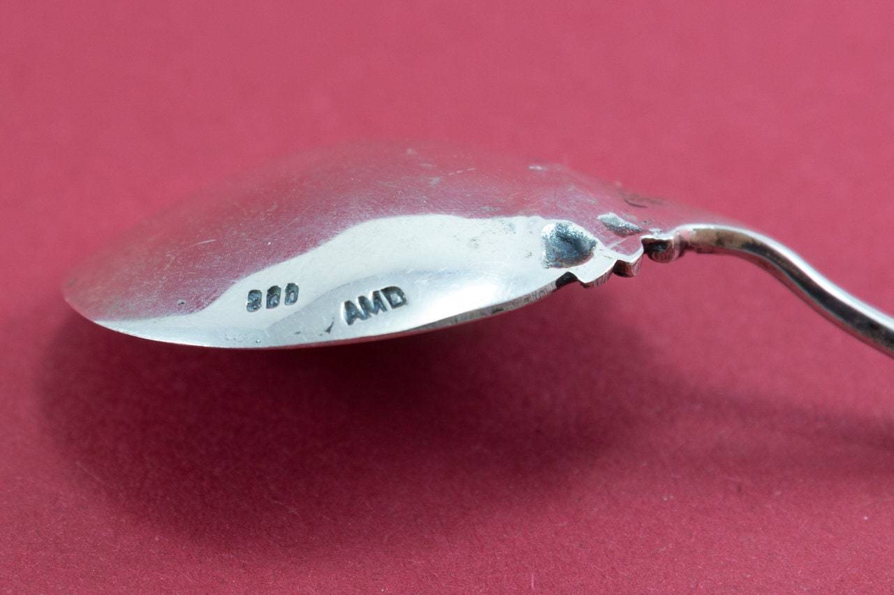 Zuckerlöffel Rokoko Rose, punziert mit "800" und "AMD"