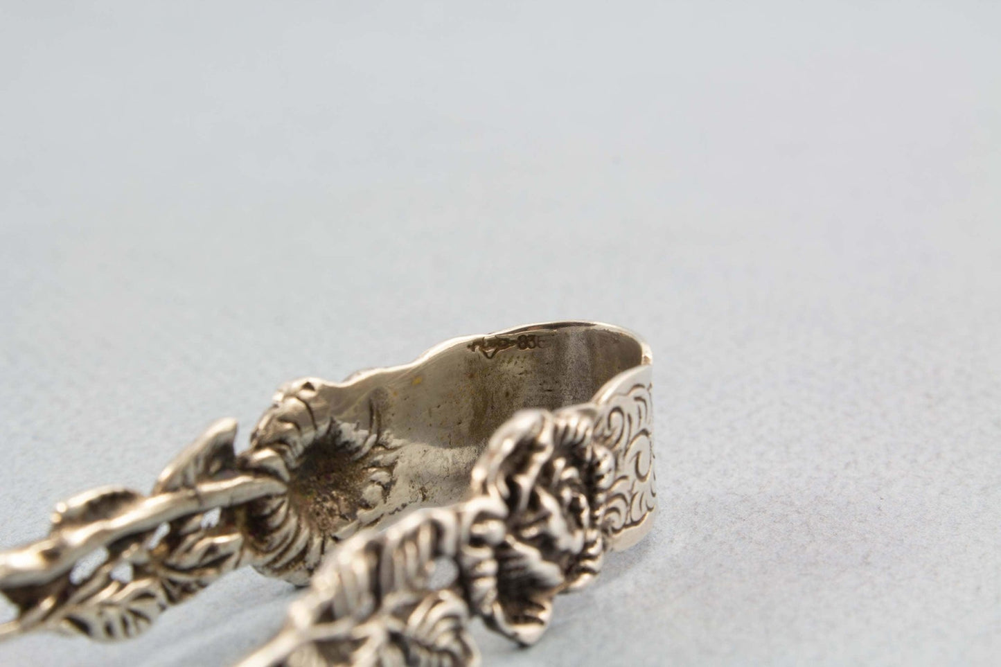Zuckerzange, Jugendstil Rose, punziert mit 835+ Albo