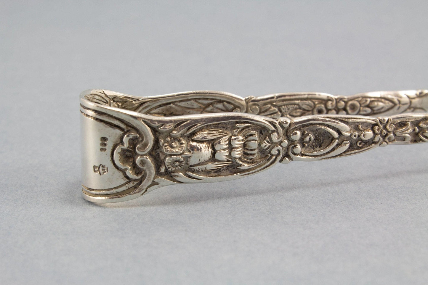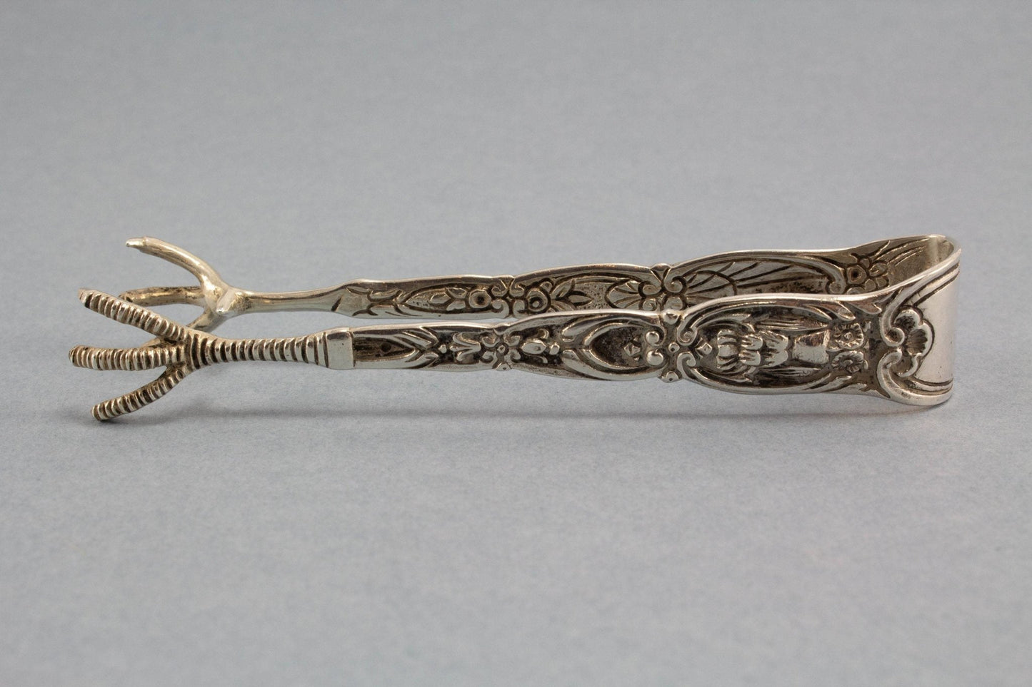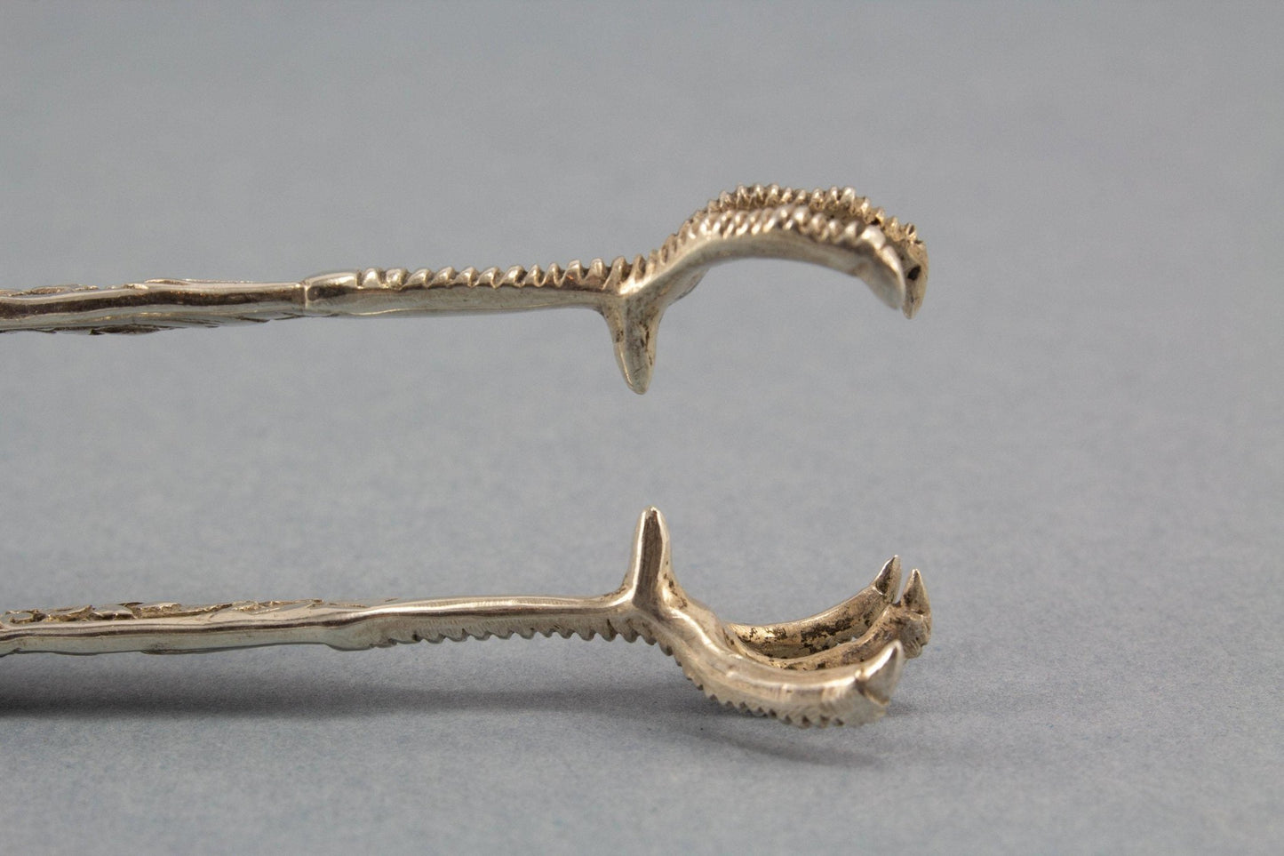 Zuckerzange mit Eulen, punziert mit 800 und Krone