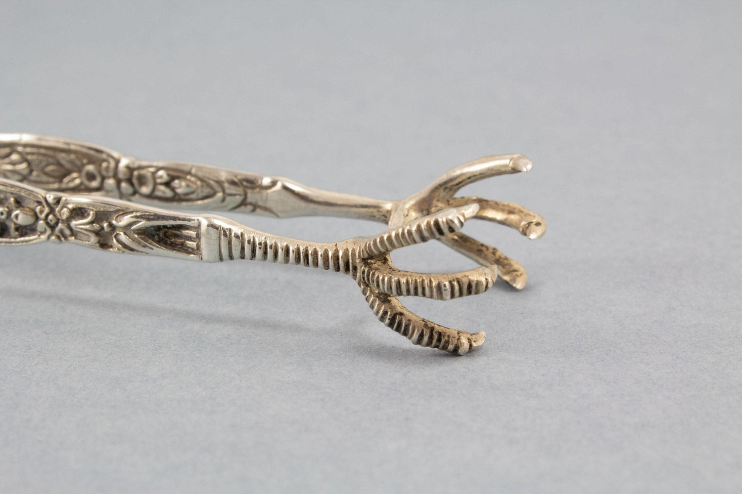 Zuckerzange mit Eulen, punziert mit 800 und Krone
