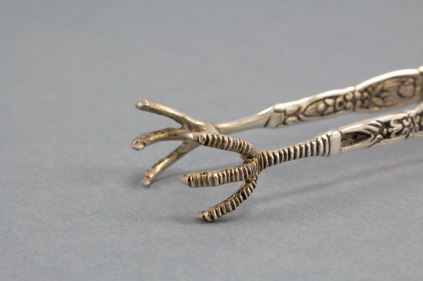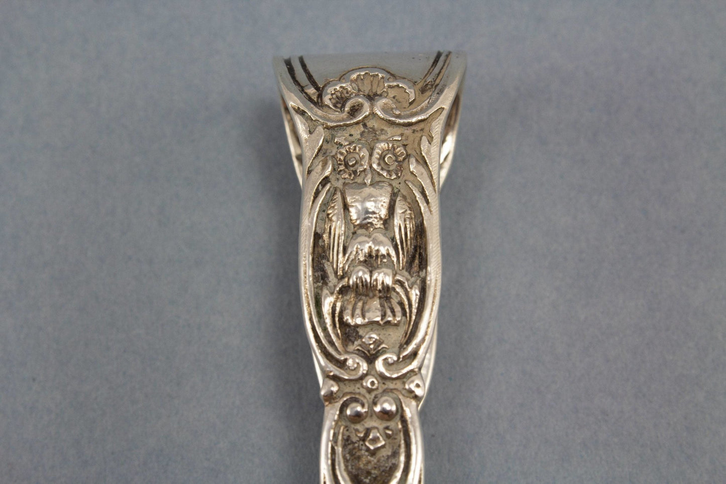 Zuckerzange mit Eulen, punziert mit 800 und Krone